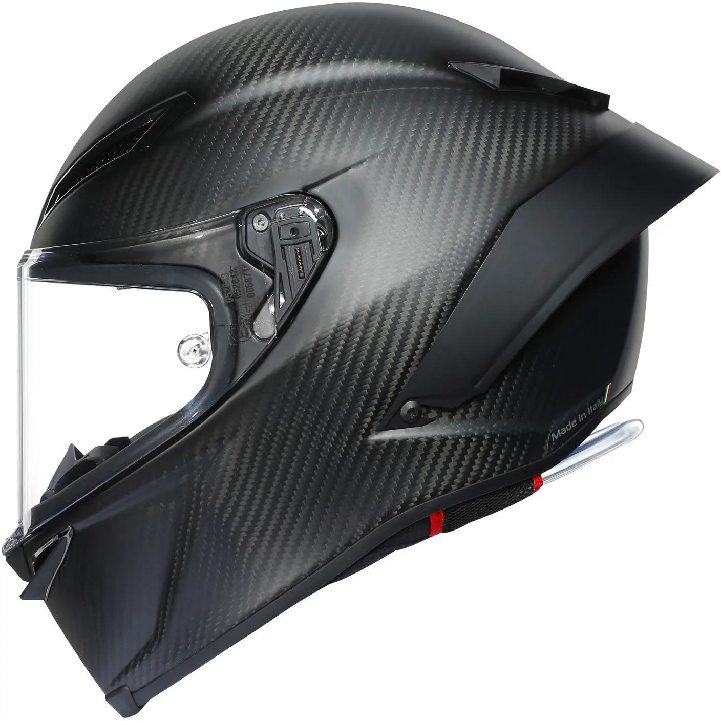Casque intégral AGV Pista GP RR. Homologué FIM. Coque en fibres de carbone. 360° Adaptative Fit. Pinlock® MaxVision inclus. Système de blocage de l’écran brevetée. Spoiler aérodynamique amovible. Intérieur Shalimar entièrement démontable et lavable. Fermeture par boucle double D.