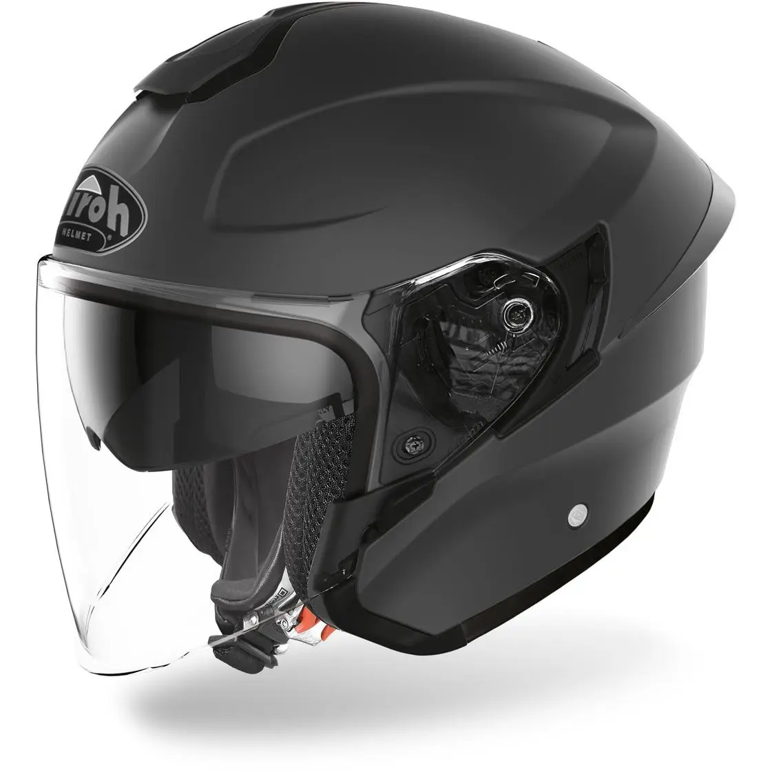 Casque jet AIROH H.20.Coque en fibre composite. 3 tailles de calotte. Livré avec un écran clair traité anti-rayures à démontage rapide. Écran solaire interne rétractable. Fermeture par boucle micrométrique