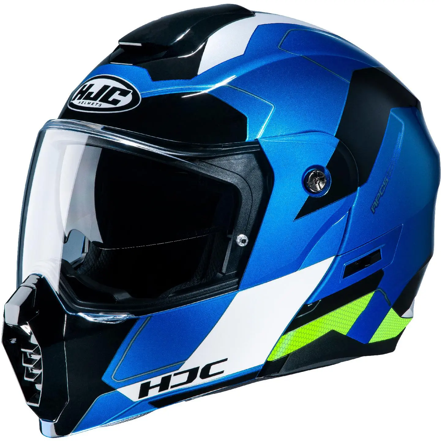 Casque modulable. Coque en polycarbonate injecté et technologie « CAD ». Fermeture de la jugulaire par boucle micrométrique. Certifié ECE 22.05. 2 tailles de calotte