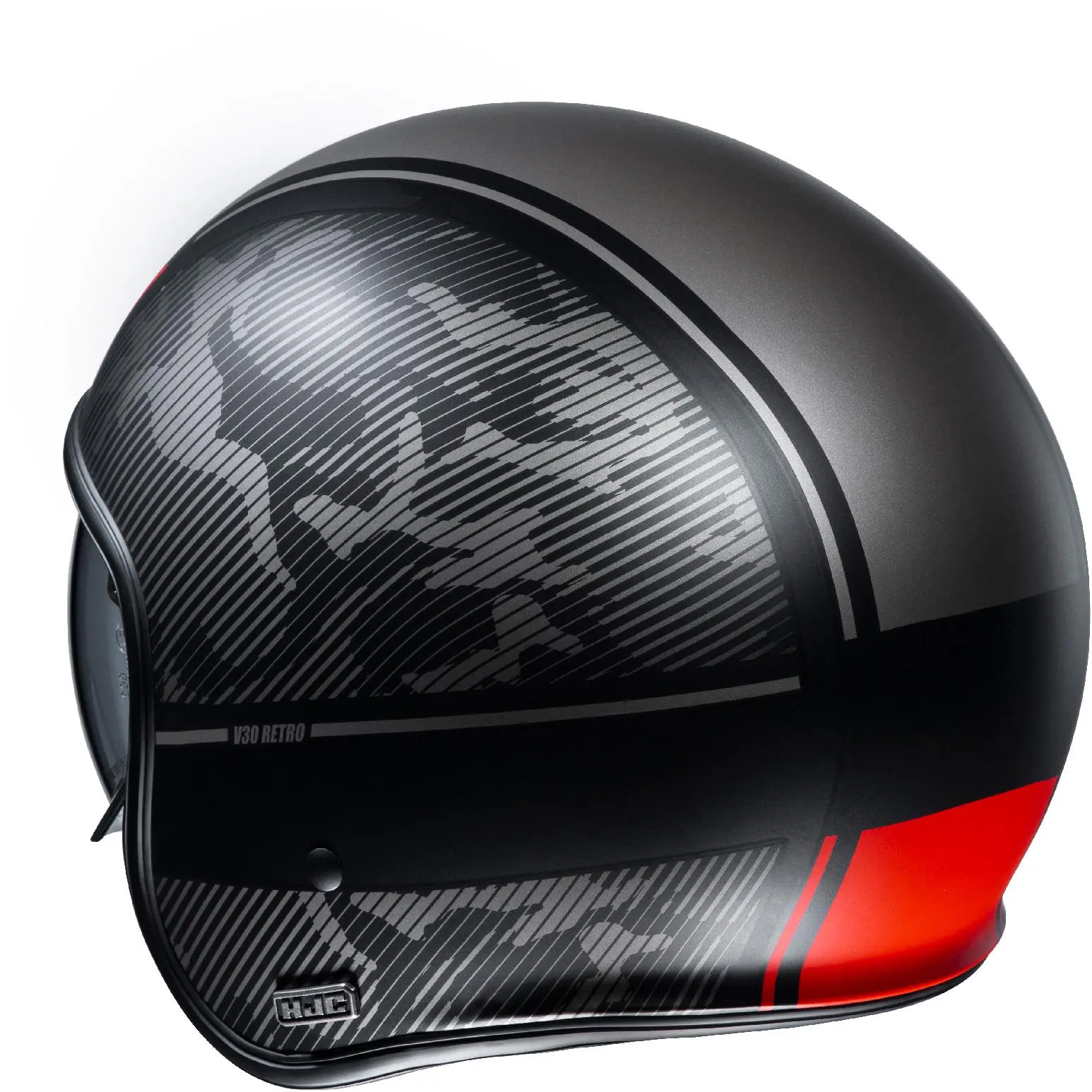 Casque jet HJC V30. 2 tailles de calotte. Coque en composite de fibre de verre. Conception compacte et légère au style rétro moderne. Mousses de joues démontables et lavables. Fermeture par boule micrométrique.