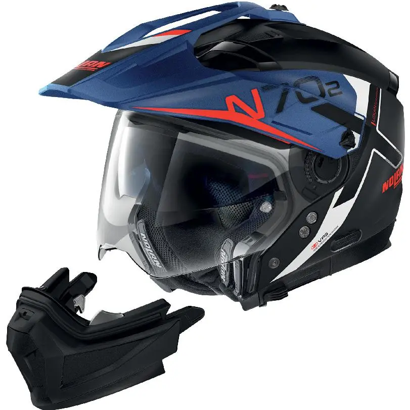 Casque crossover muni d’une mentonnière de protection amovible.