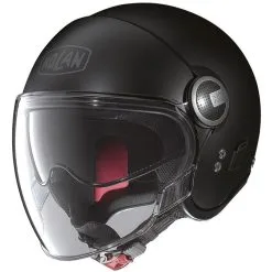 Casque jet. Coque en polycarbonate. 2 tailles de calotte. Double écran solaire rétractable moulé en Lexan® : traité anti-rayures, antibuée et UV 400. Intérieur « Clima confort ». Fermeture par boucle micrométrique Microlock®. Homologation 22-05.