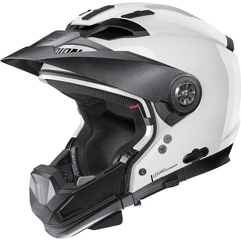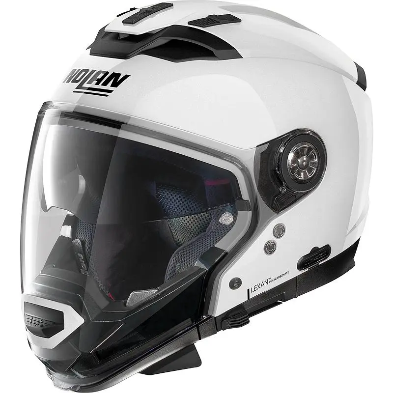 Casque crossover. Coque en polycarbonate. Double homologation ECE 22-05: jet et intégral. 2 tailles de calotte. Livré avec un écran clair traité anti-rayures. Écran solaire interne traité anti-rayures et anti-buée. Système de ventilation « Air BOOSTER Technology ». Prédisposé pour recevoir le système de communication N-Com. 8 configurations possibles.
