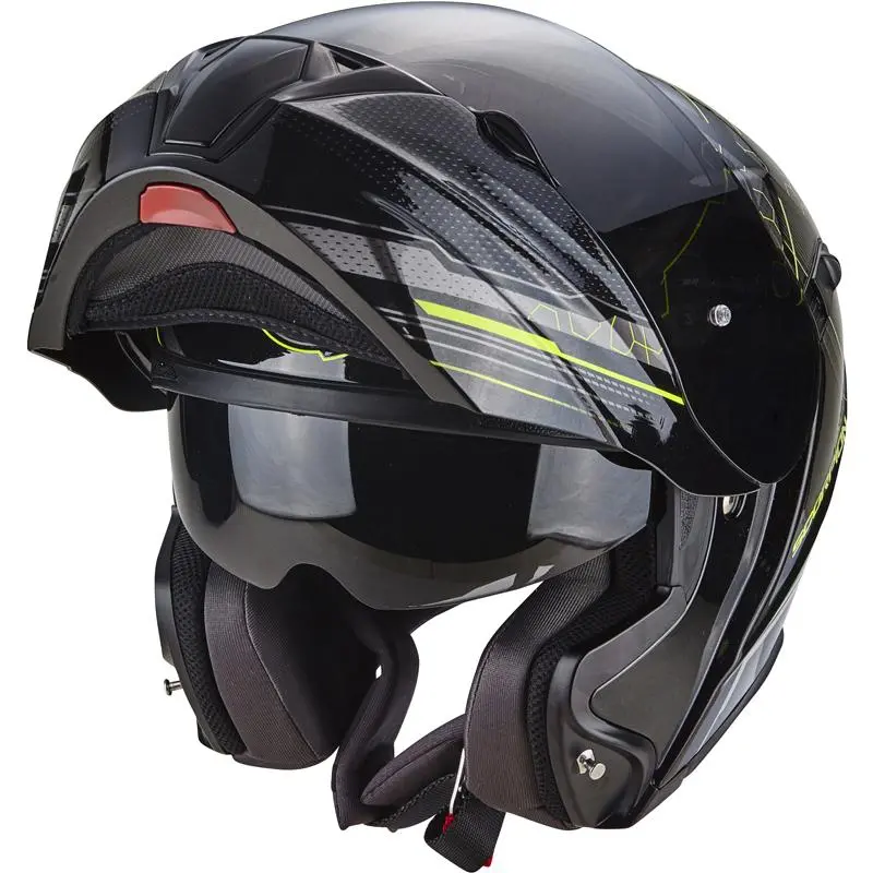Casque modulable. Coque en résine thermoplastique. 2 tailles de calotte. Intérieur en tissu KwikWick2, hypoallergénique et lavable. Écran solaire traité antibuée Speedview. Boucle micrométrique.
