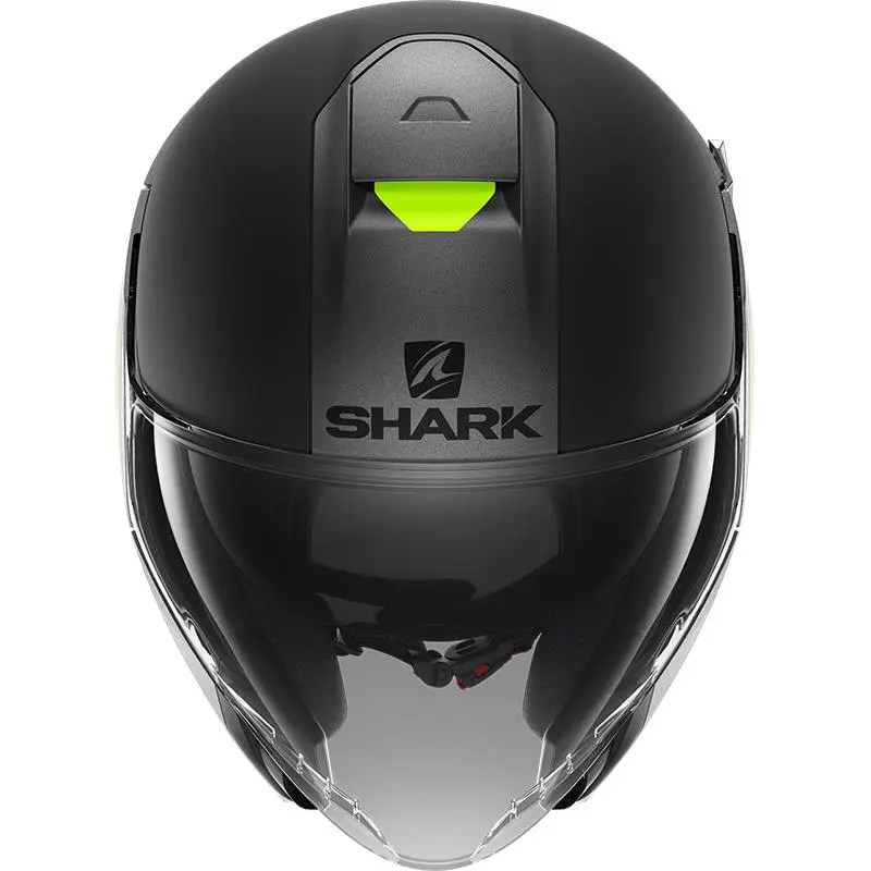 Casque jet SHARK Citycruiser. Coque en résine thermoplastique injectée. 2 tailles de calotte. Écran traité anti-rayures. Ventilation dynamique antibuée. Écran pare-soleil labellisé UV380 et traité anti-rayures. Fermeture par boucle micrométrique. Homologation ECE-2205