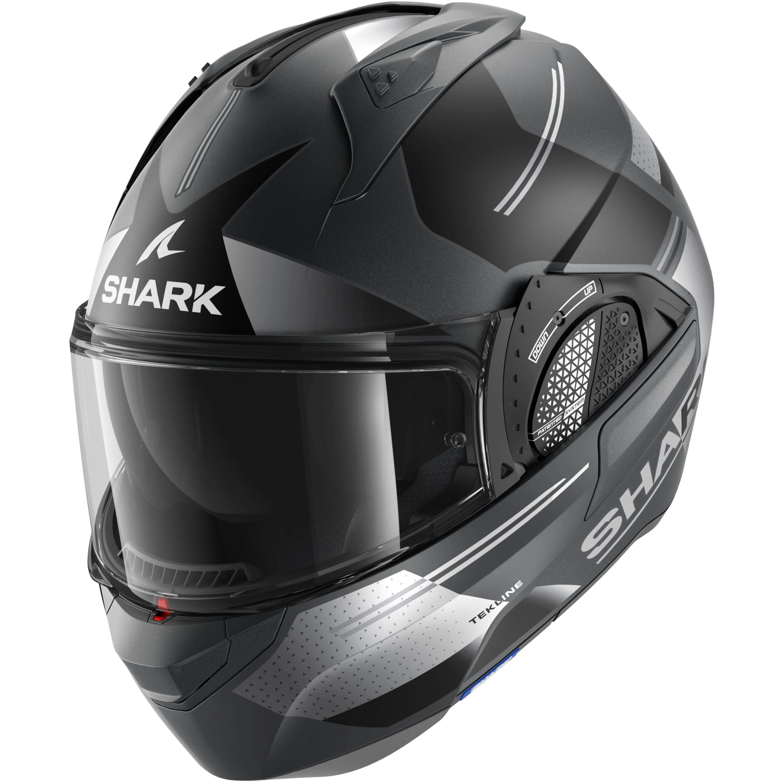 Casque moto modulable. Coque en résine thermoplastique injectée. 2 tailles de calotte. Fermeture de la jugulaire par boucle micrométrique. Ecran incolore VZ 150 Max Vision de classe optique 1, assurant une qualité de vision incomparable, traité anti-rayure et antibuée. Auto-down qui permet la remontée automatique de l’écran lors de la manipulation de la mentonnière. ±1650g. Homologation ECE 22.05 « P/J »