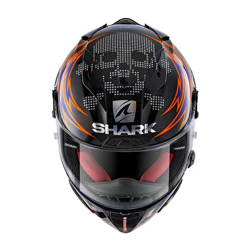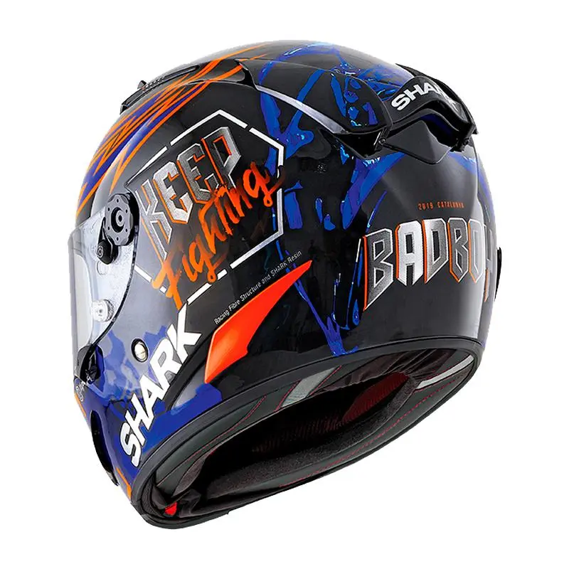Casque intégral. Coque en carbone et Aramide. 2 tailles de calotte. Écran traité anti-rayures et antibuée. Intérieur démontable et lavable. Spoiler arrière double lame pour favoriser l’aérodynamisme. Boucle double D.