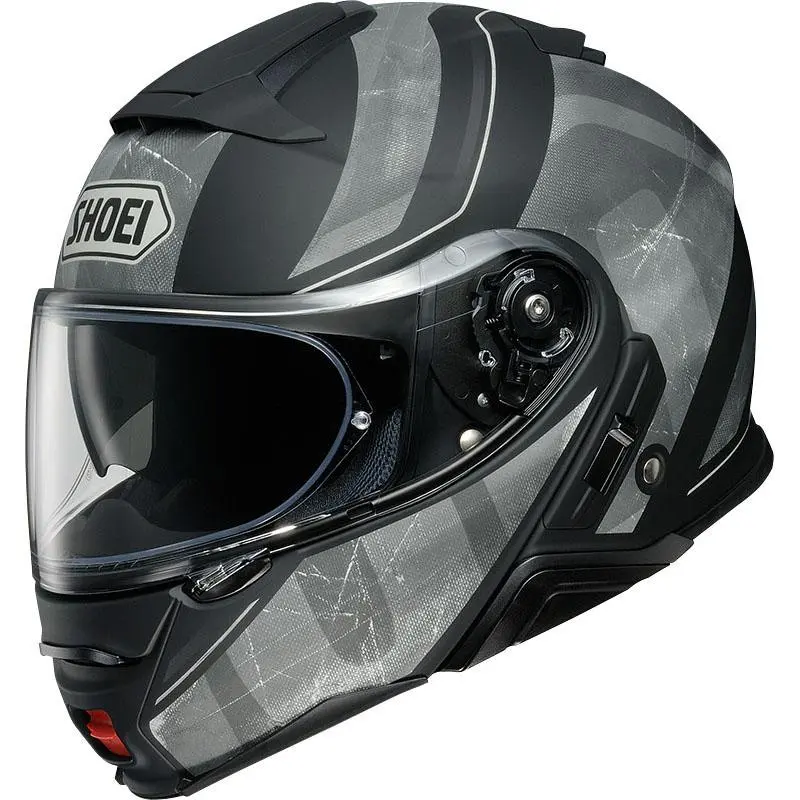 Casque modulable. Coque en fibre AIM: superposition de couches de « fibre organique » et fibre multi-composite. 3 tailles de calotte. Écran solaire interne. Intérieur démontable et lavable. Livré avec une lentille antibuée Pinlock. Large ventilation supérieure et extracteur d’air à l’arrière. Double spoiler à l’arrière. Boucle micrométrique. Double homologation: jet et intégral.